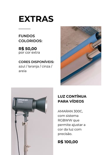 Locações noturnas até às 23h. Sábados e domingos até às 18h.